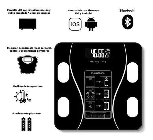 Gracias a su conexión inalámbrica (Bluetooth/WiFi) y la app gratuita, podrás sincronizar todos los datos en tiempo real, llevar un registro de tu progreso y visualizar gráficos de evolución de peso, IMC y más.