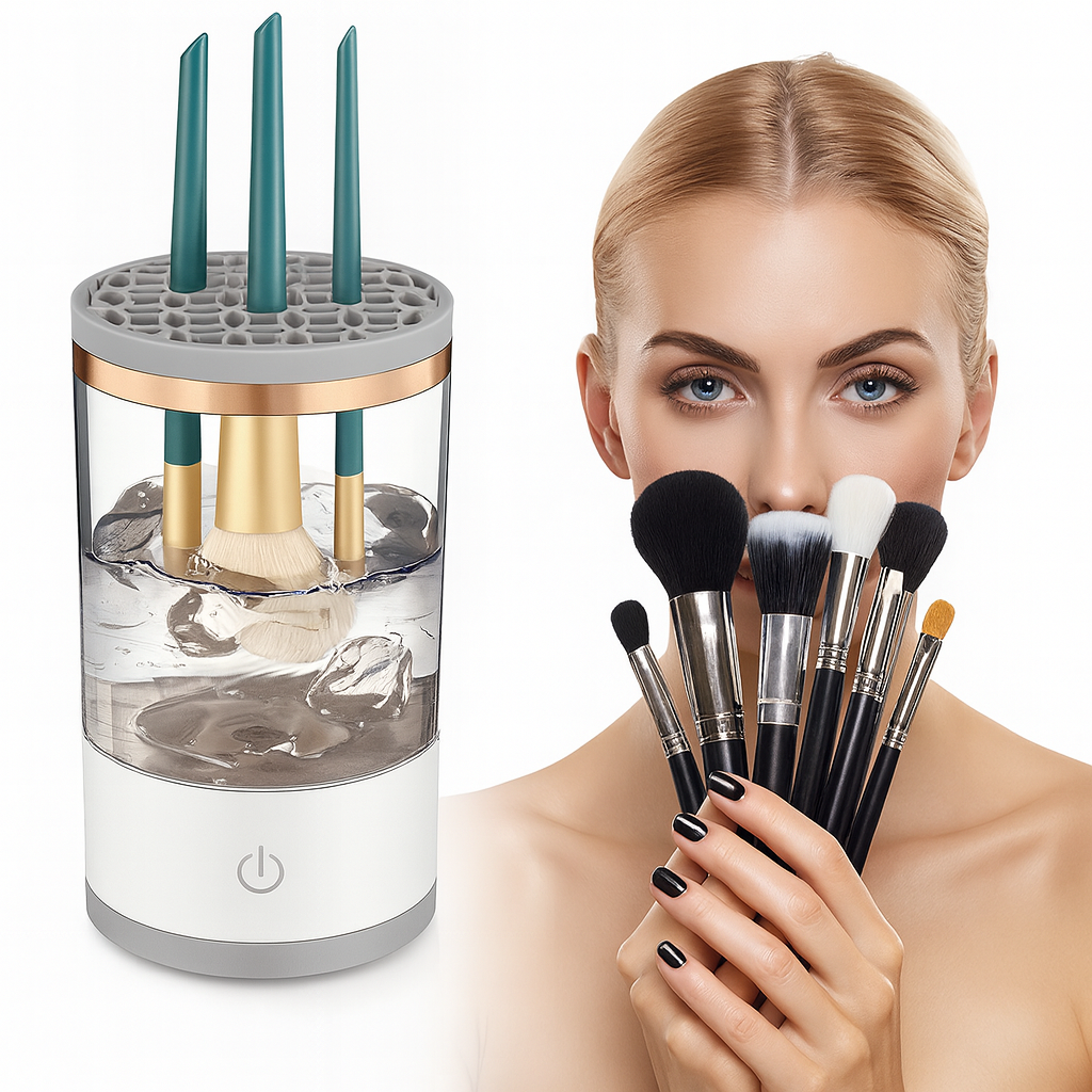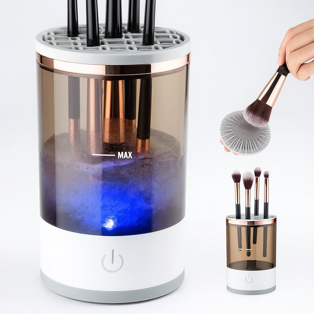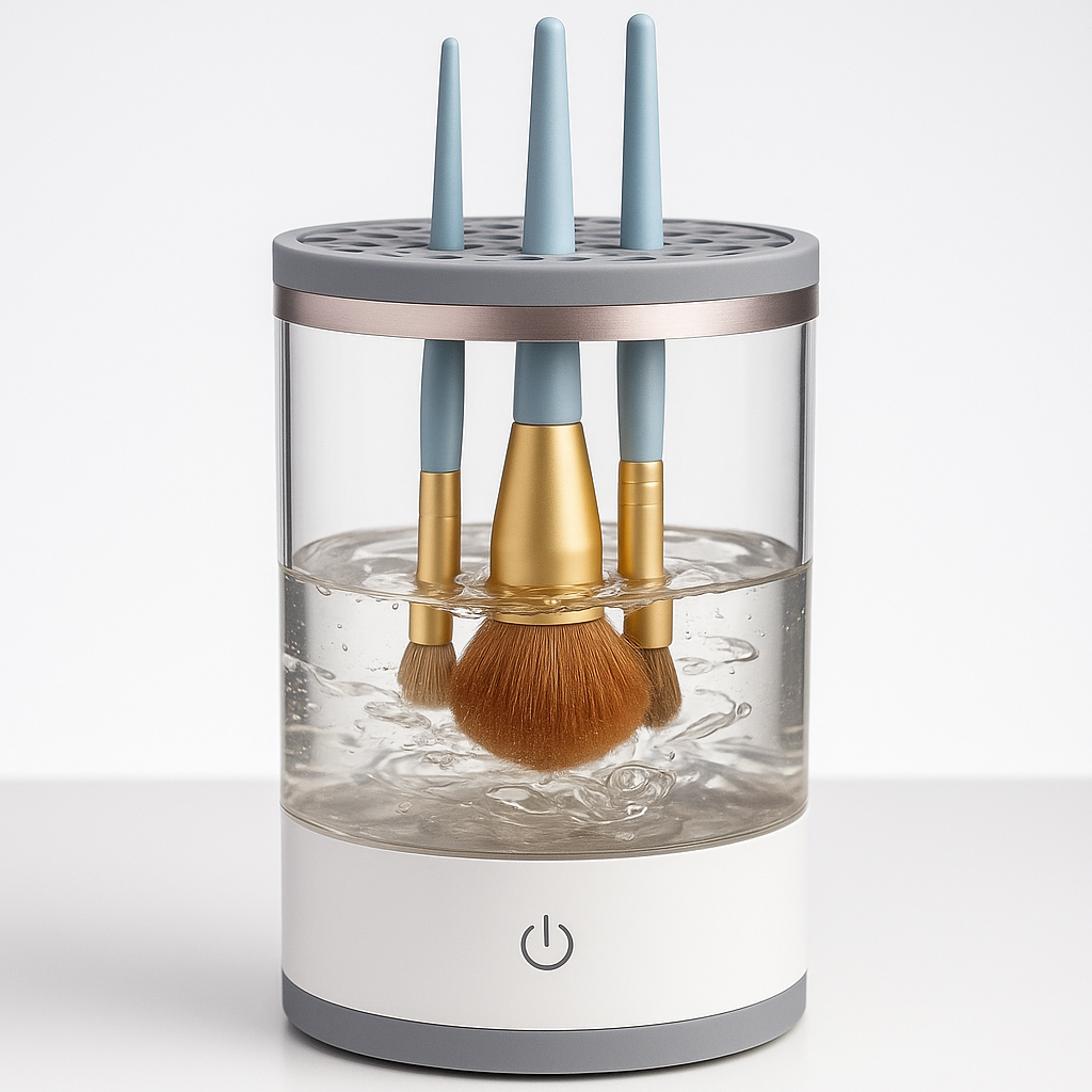 La máquina realiza una limpieza profunda que elimina por completo los residuos de base, polvos y aceites acumulados, dejando las cerdas limpias y listas para el siguiente uso sin esfuerzo manual.