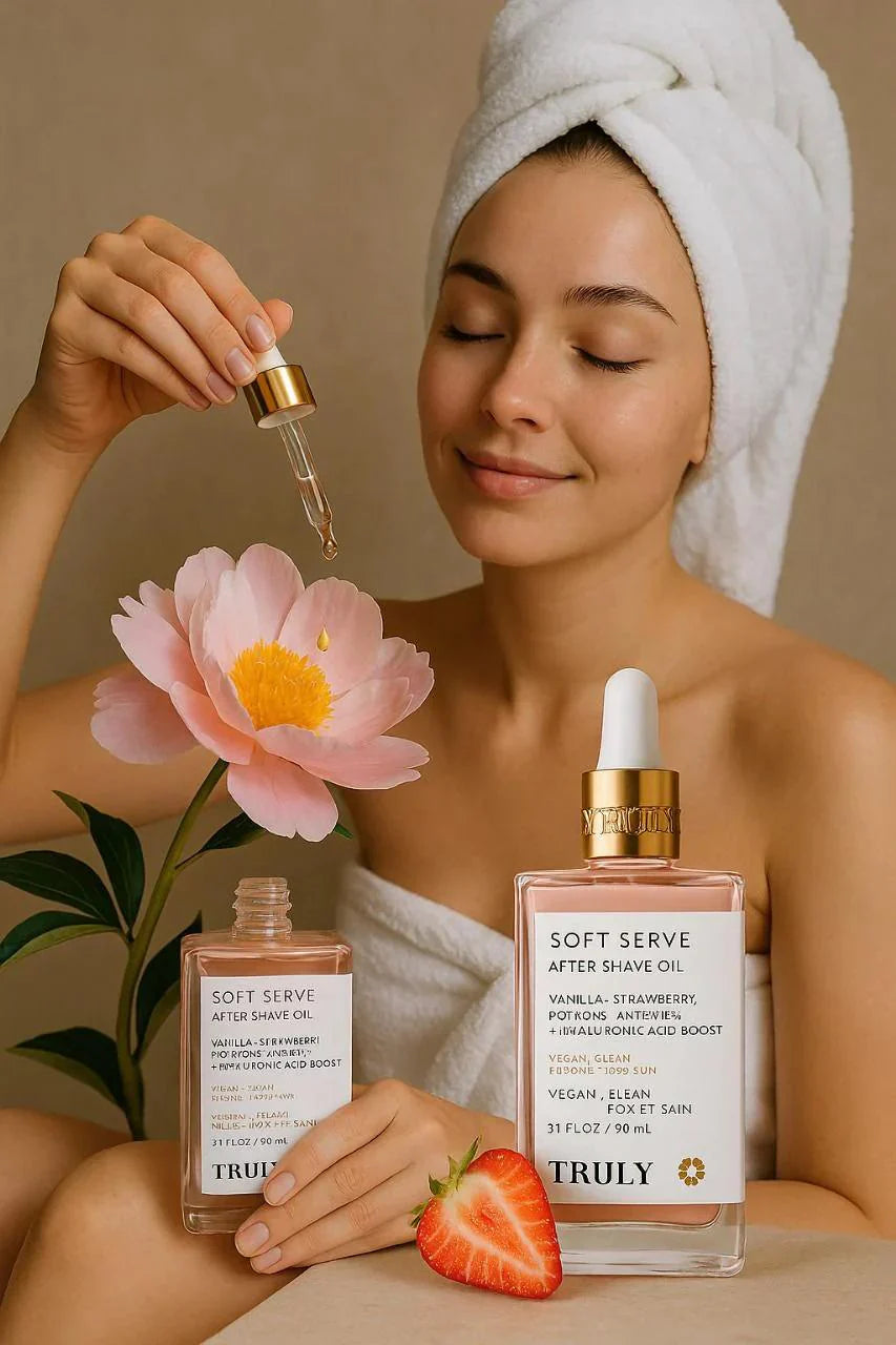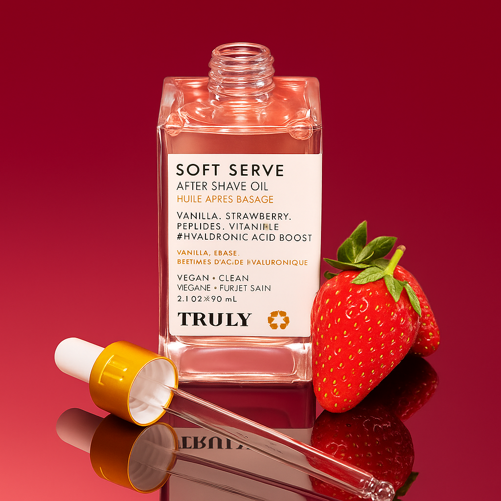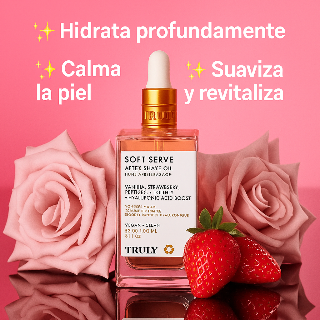 Truly Soft Serve After Shave Oil revitaliza la piel, estimula la regeneración celular y devuelve un aspecto radiante y saludable, gracias a sus péptidos y vitaminas de alto rendimiento.